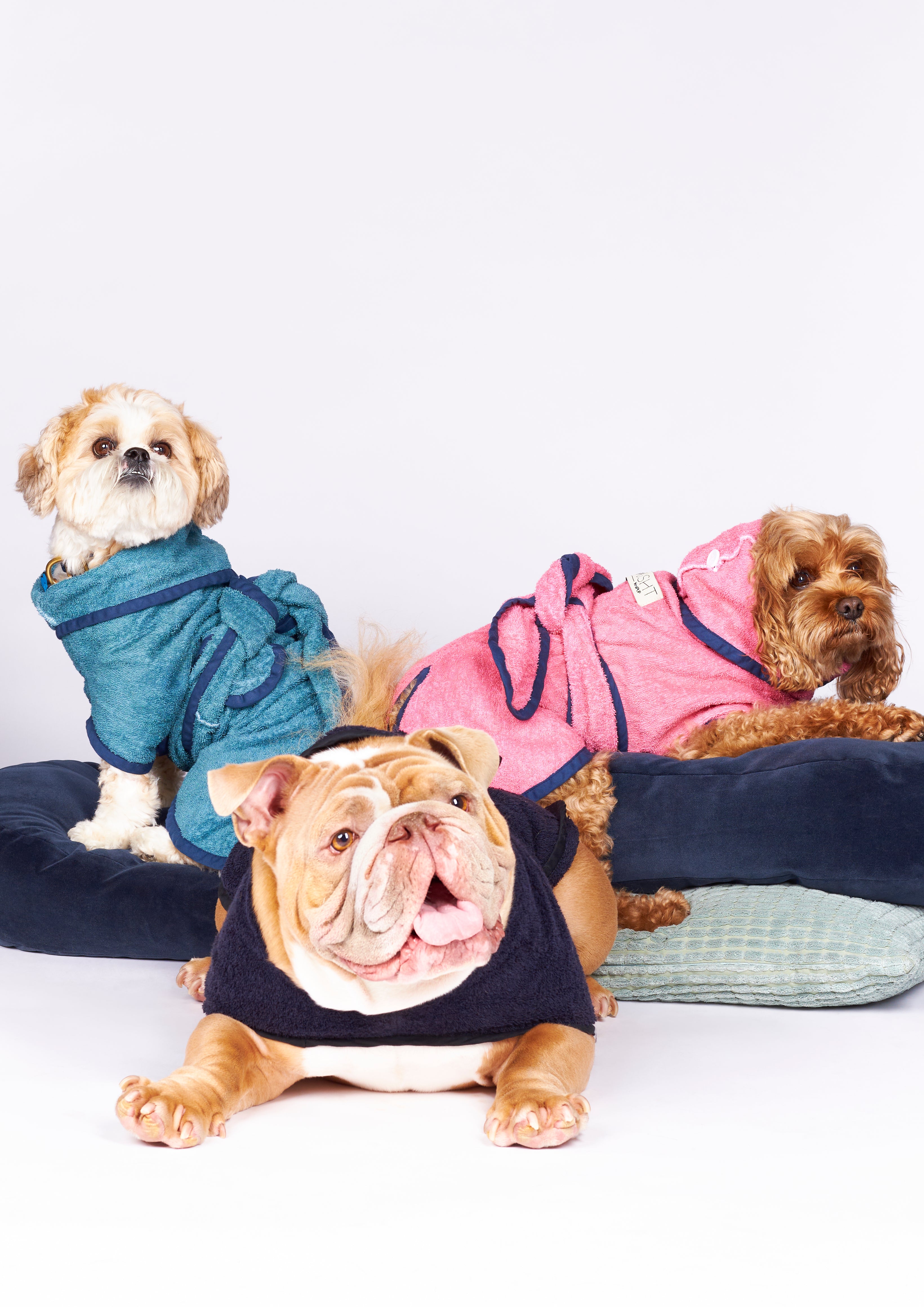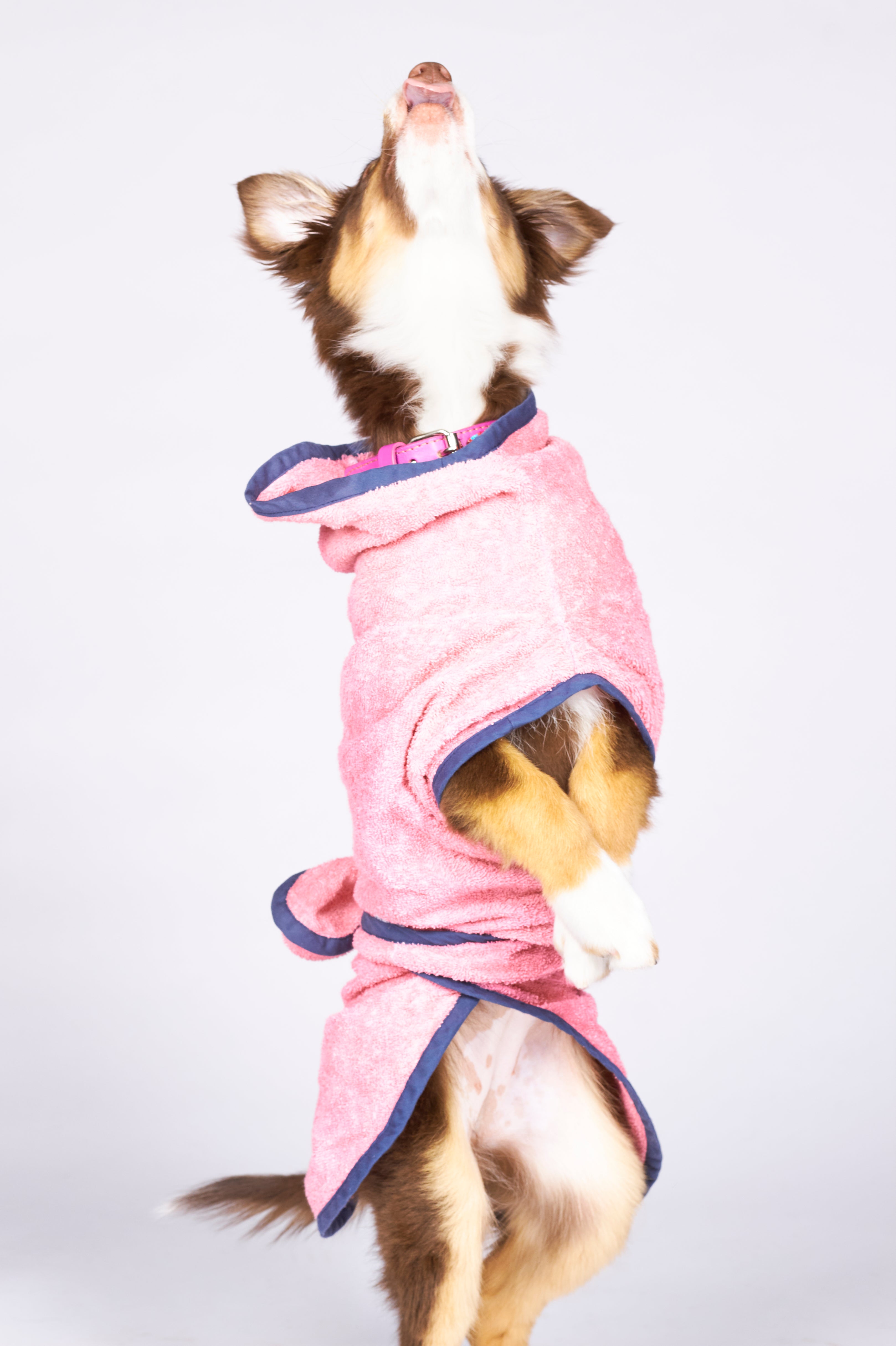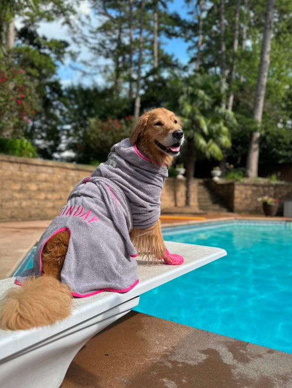 Unlike most dog robes, our WraPUPs are super easy to put on and take off before your pup can wiggle away. Plus, use the cute hood to help dry your dog's ears, and button it back after drying.